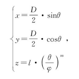 θ——螺旋線上任意點相對起始點的旋轉(zhuǎn)角度,θ∈[0,φ],°;