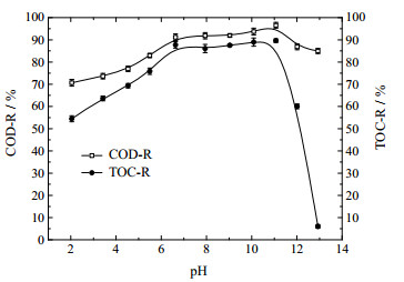 圖進(jìn)料pH對水樣COD和TOC去除率的影響
