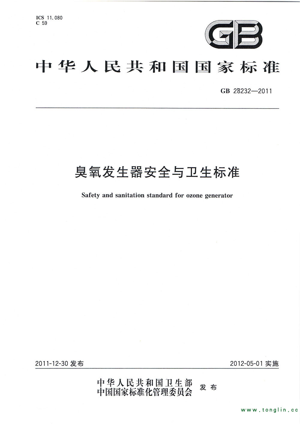 中文標(biāo)準(zhǔn)名稱: 臭氧發(fā)生器安全與衛(wèi)生標(biāo)準(zhǔn)